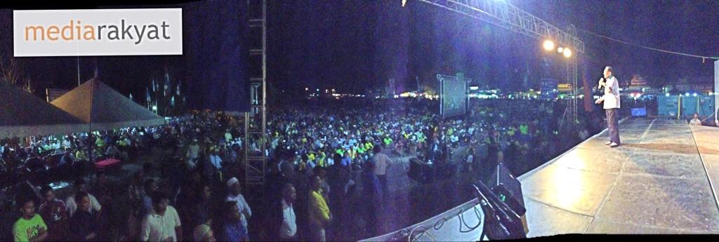 Anwar Ibrahim speaking to a crowd of 10,000 people at Pasir Besar, Negeri Sembilan.