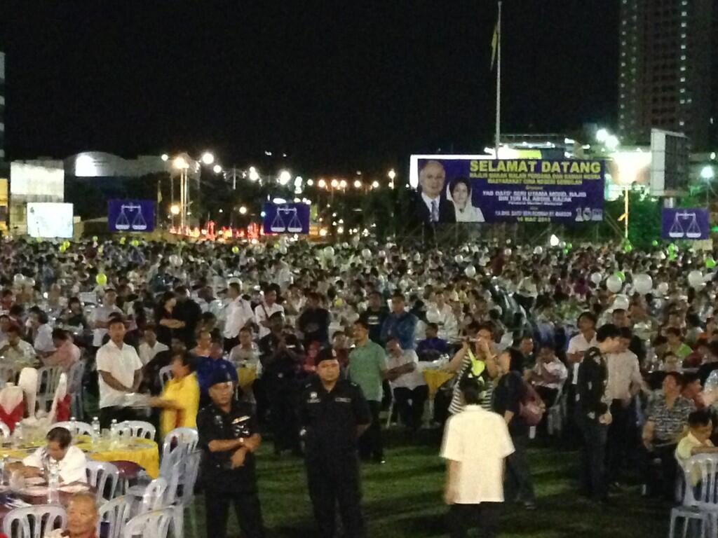 SEREMBAN: Prime Minister Datuk Seri Najib Razak was greeted by about 30,000 people from the Chinese community upon his arrival at the Seremban Municipal Council (MPS) field here earlier tonight.