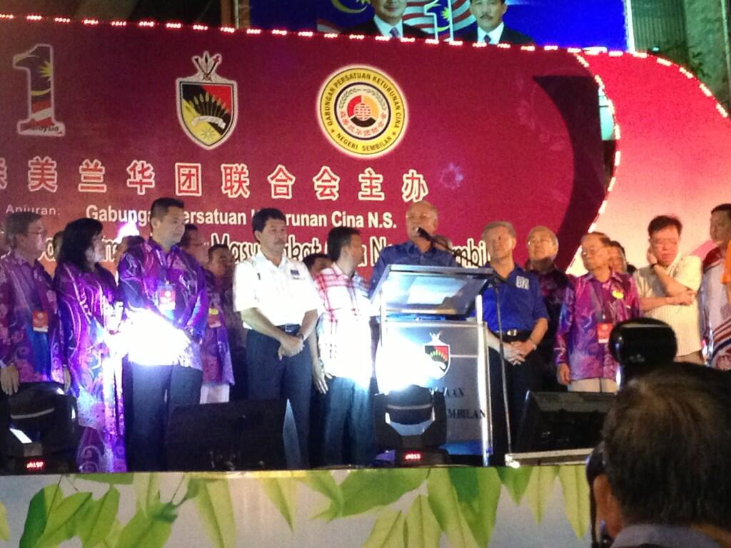 Najib arrived with his wife Datin Seri Rosmah Mansor at 8:30pm to attend an open air gala dinner with the Chinese community of Negri Sembilan.