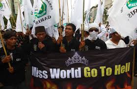 Thousands of hardliners had taken to the streets around the country to protest against the pageant in recent weeks, and radical group the Islamic Defenders’ Front had pledged to stage protests on Saturday against the pageant.