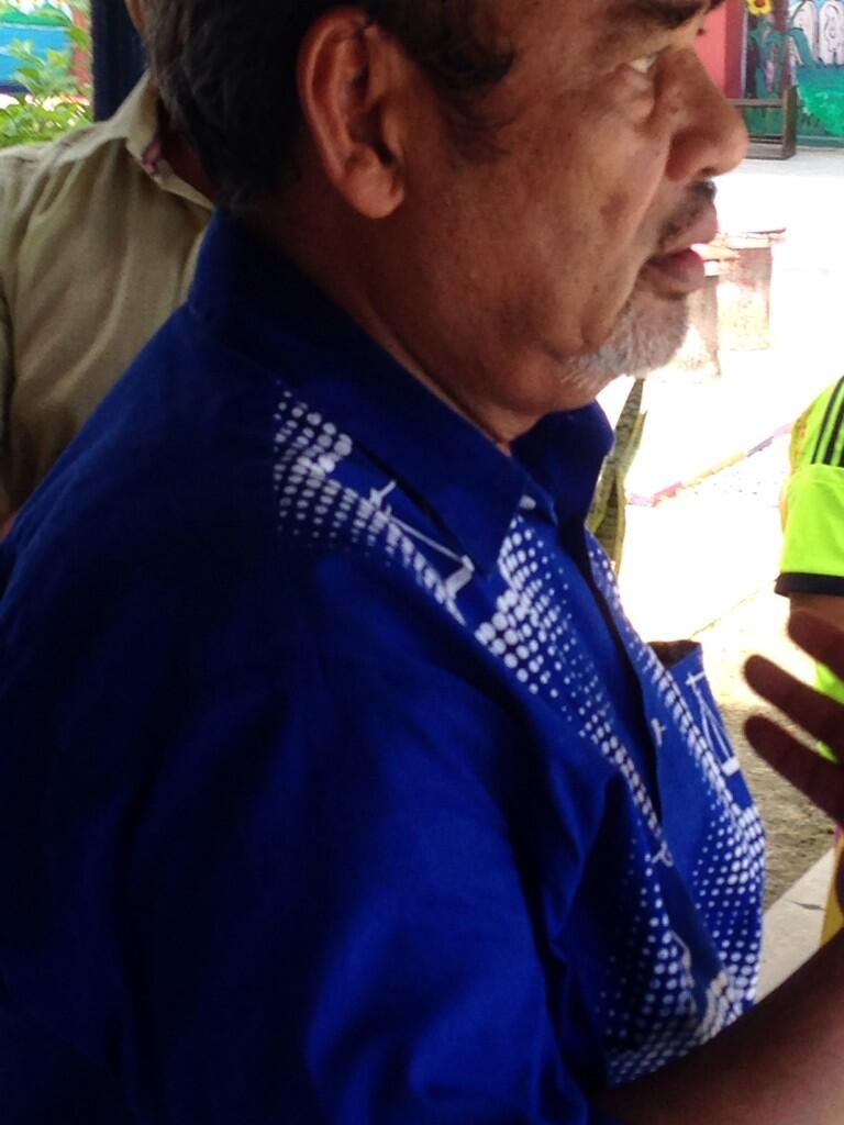 Sheer arrogance & disregard for rules. Pasir Salak MP in polling area SK Kg Bahagia with BN logo shirt. (tweetIskandarbak)