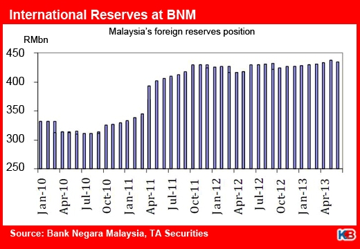 To illustrate the strength of the fundamentals, let’s take a look at Bank Negara Malaysia (BNM)’s foreign exchange reserves. When forex reserves decrease, it signifies an outflow of funds. If you look at the graph below, the country’s forex reserves have been on the rise from 1997 to 2013, except for dips during the 1997/1998 Asian financial crisis and the 2007-2009 period, which coincides with the global financial crisis.