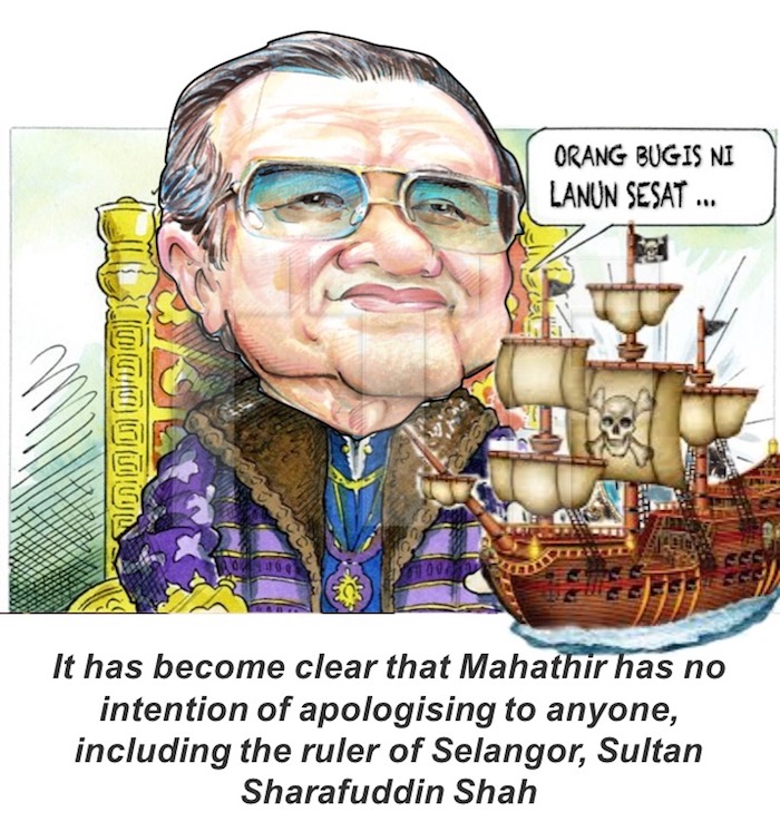 Three years later, Mahathir became the first Malay to openly declare that the Prime Minister of Malaysia, Dato’ Seri Najib Tun Razak, was a Bugis pirate who got lost at sea and ended up in Malaysia. Despite a royal rebuke from Sultan Sharafuddin and sharp criticism by Indonesian vice-president Jusuf Kalla, the former premier reiterated the stand during a Pakatan Harapan rally held a week later by insisting that Najib was a Bugis pirate and not a warrior.
