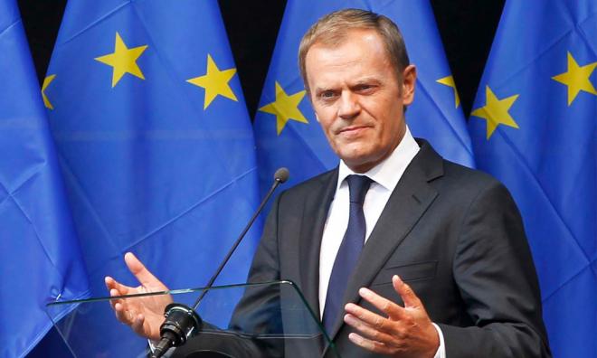“The EU27 has agreed that it will accept the UK’s request for a Brexit flextension until 31 January 2020,” Tusk (above) said in a tweet.