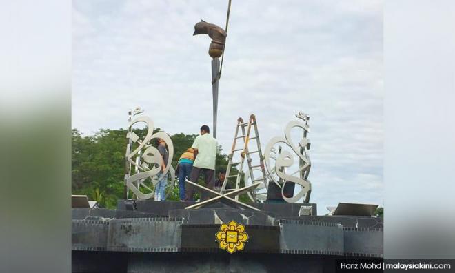 The sculpture of the keris, erected on a water fountain, was replaced with a structure of a rehal (the book rest for placing the Al-Quran).