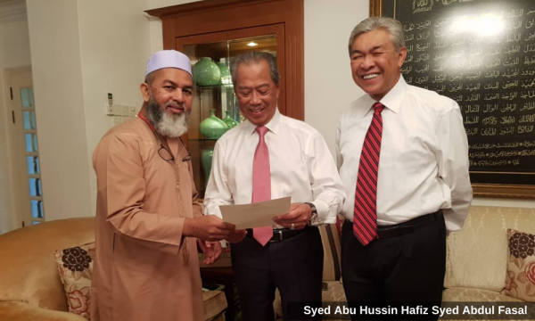 He furnished a photo of him presenting the SD to Muhyiddin with Umno president Ahmad Zahid Hamidi present. - Mkini
