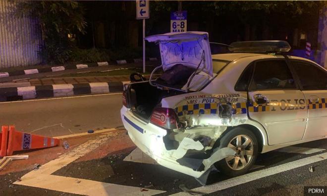 In the 12.45am incident, a 45-year-old lorry driver lost control of the vehicle on the left lane and hit the cops who were in the midst of closing the roadblock along Jalan Syed Putra.