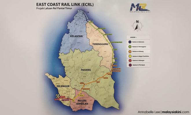The new ECRL alignment is now shortened by 40km from 688km to 648km - from Kota Bahru in Kelantan and runs south through Mentakab, Jelebu, Kuala Kelawang, Bangi, Kajang, Putrajaya, and terminating at Port Klang. - Mkini