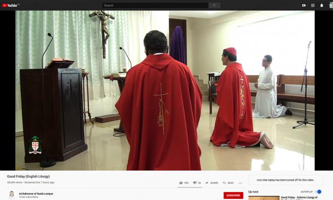 Sermons titled Way of the Cross and Celebration of the Passion of the Lord were broadcast live via YouTube Archdiocese of Kuala Lumpur in multiple languages since 2pm, and was followed by over 6,000 followers.