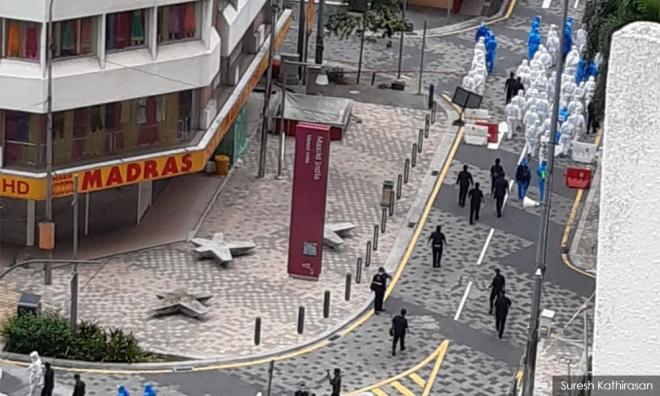 Around the same time, police and Immigration trucks which had been parked at Jalan Munshi Abdullah drove into the premises.