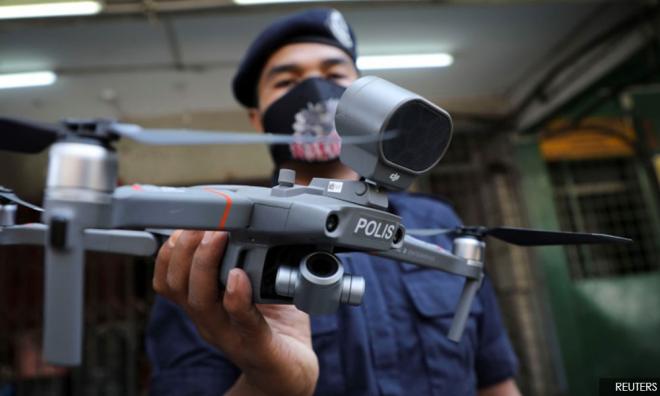 The use of drone technology was introduced in the first phase of the (MCO) and was used by the police and the Malaysian Armed Forces (MAF) not only in monitoring public movements but also in spreading information about the MCO in Bahasa Malaysia, Mandarin and Tamil as the drones were also equipped with loudspeakers.