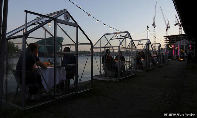 A Dutch restaurant has come up with an idea on how to offer classy outdoor dining in the age of coronavirus: small glass cabins built for two or three people, creating intimate cocoons on a public patio.
