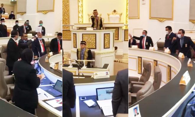 Based on several video recordings of the incident provided by deputy speaker Dr Wong Fort Pin, Idris' action then sparked shouting inside the hall at Seri Negeri Complex in Ayer Keroh, seeing several Harapan assemblypersons calling for the speaker to eject Idris.
