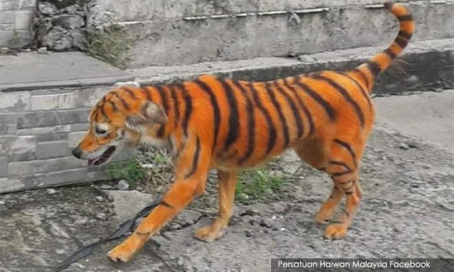 The Malaysia Animal Association is offering a reward to anyone with information about the perpetrators who painted a dog to look like a tiger.