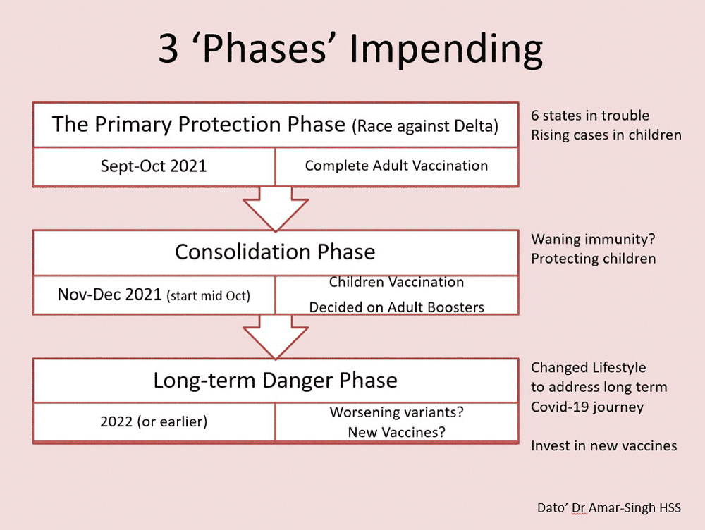 We are currently in what I call the ‘Primary Protection Phase’ where we are racing against Delta and trying to complete adult vaccination. Many states outside the Klang Valley are in trouble and we are starting to see rising cases of children hospitalised nationally.