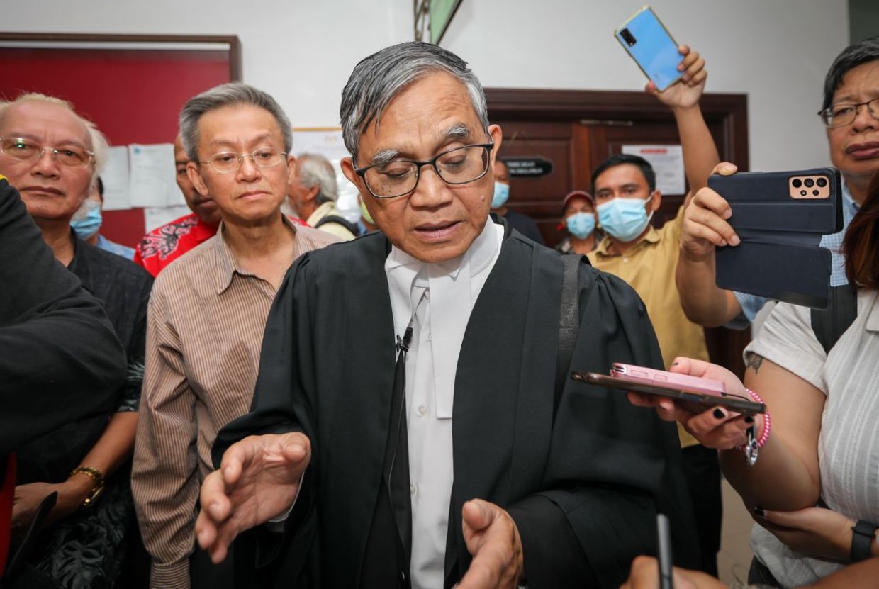 Counsel for the plaintiffs Peli Aron (centre) speaking to reporters outside the courtroom following the postponement of the High Court's decision. - ZULAZHAR SHEBLEE/The Star
