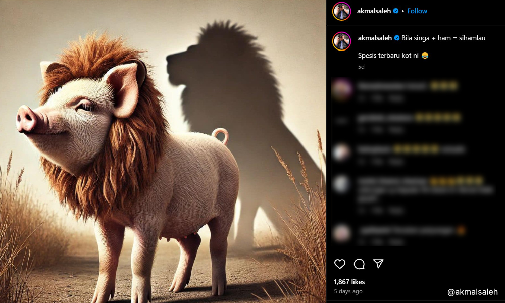 Upping the ante, the firebrand Akmal, who has been at the forefront of racial and religious issues, also shared an image on his social media of a pig with a lion’s mane, dubbing it a “new species”.