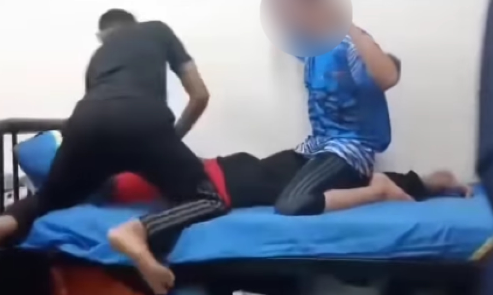 The one-minute and 32-second video footage shows a group of male students smashing the head and body of another student lying on the bed.
