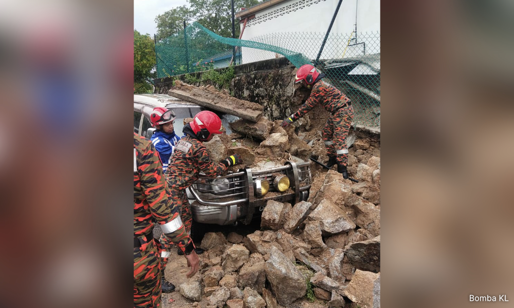 In Taman Tun Dr Ismail, a landslide knocked down the walls of an international school as well as damaged a classroom, teacher’s room, library, and two cars.