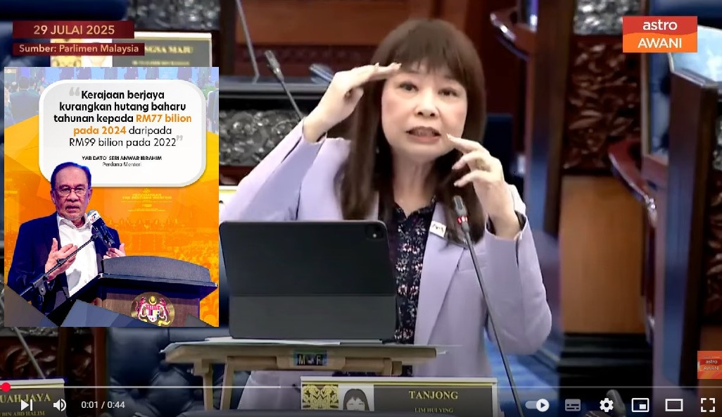 Above all else, both the Information Department and PKR Youth were found blowing the trumpet on the Madani government’s behalf by citing PMX boastfully announced that “new debts have been successfully reduced to RM77 bil in 2024 from RM93 bil (2023) RM99 bil (2022)”.