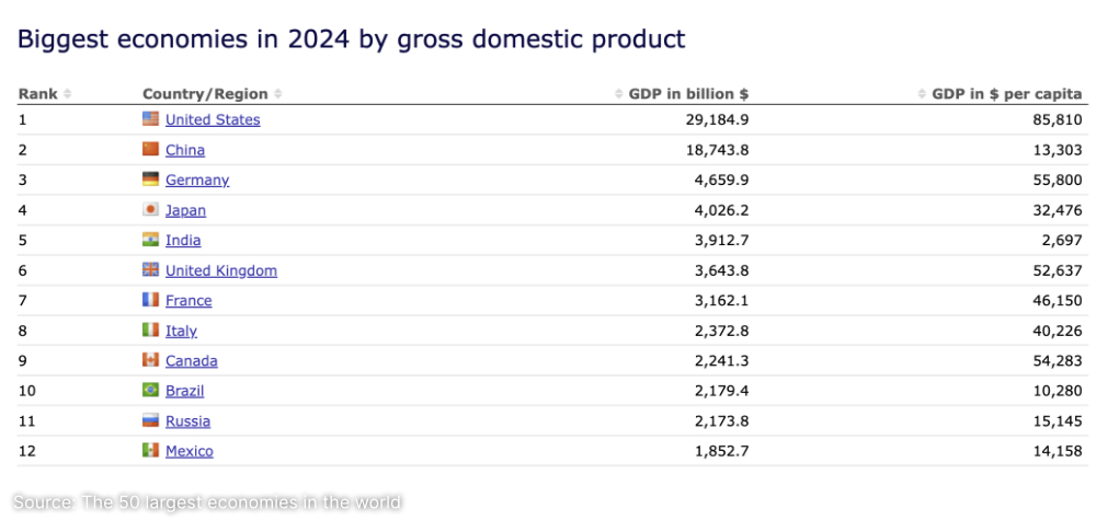 Also, other countries are catching up with the US in terms of income, as measured by the nominal gross domestic product.