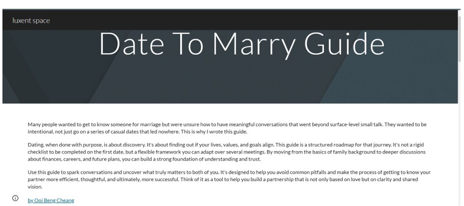 The guide is designed to evaluate if potential spouses’ lives, goals and values align.