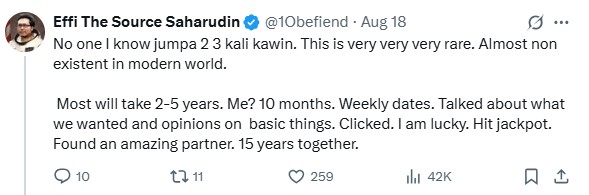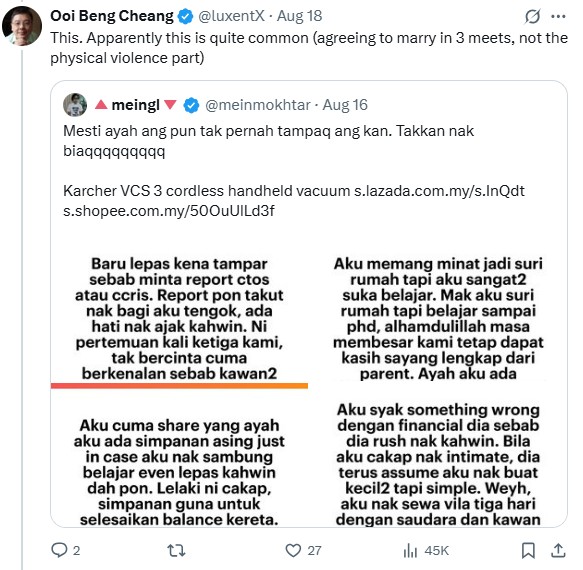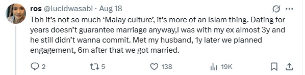 This was the assertion by current affairs observer Ooi Beng Cheang in a post on X who noted that it was common in Malay culture for single men and women to be talking about marriage “after just two to three meetings”.