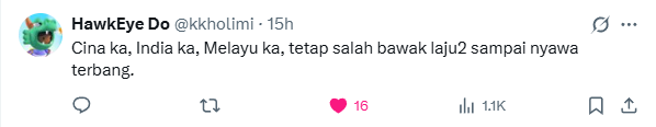 Perhaps the most relevant comment came from @kkholimi who said, “Chinese, Indian or Malay, he is still wrong for bringing it so fast that a life was lost.”