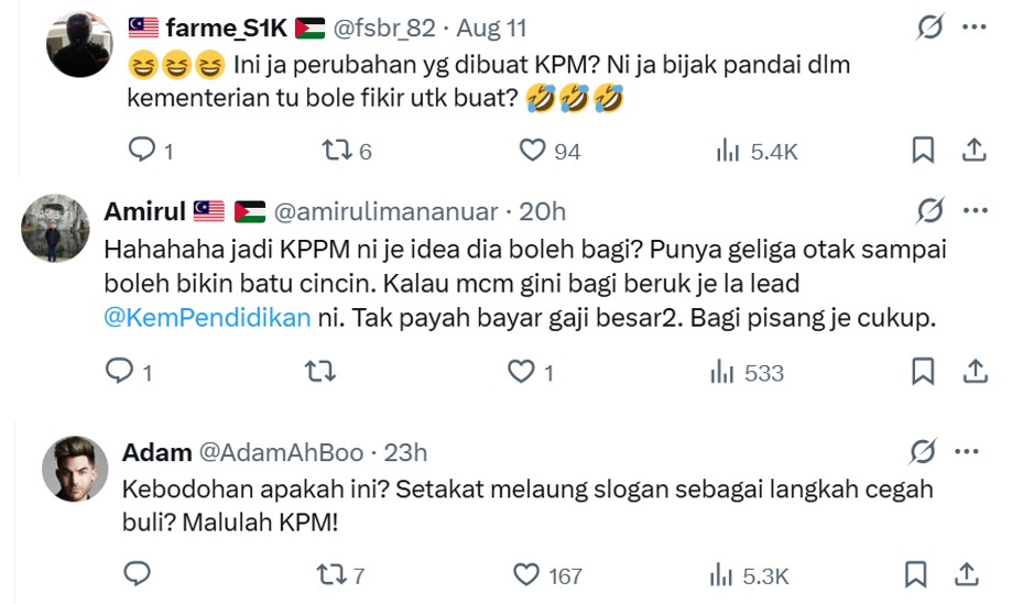 As reported by Astro Awani (@501Awani) on X, the MOE has mandated that the shout of “We Hate Bullies” be the catchphrase that brings this malaise to an end.