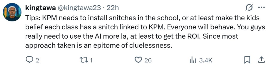 The commenter added that the MOE needs to utilise artificial intelligence (AI) more to get better results because at the moment “the approach taken is an epitome of cluelessness.”