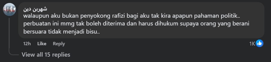Another commenter who also claimed he was not a supporter of the PKR politician contended that such incidents cannot be tolerated and must be punished lest it prevents other brave souls from whistle-blowing.