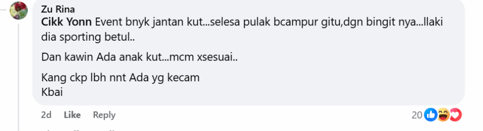 There were those comments that reflected the ultra-conservative outlook of some commenters, who described the attendance of such an event by a married mother of two as inappropriate, given that the gathering was going to be predominantly male.