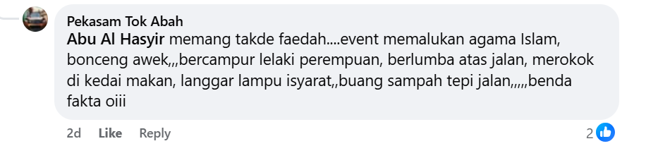 On the one hand, it is evident that a number of citizens do not view this gathering of bikers as promoting healthy and positive values. At the very forefront is the open mixing of genders at the event, which surprisingly took place in PAS-ruled Terengganu.