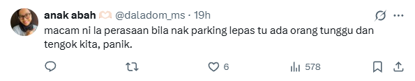 Sadly. In the time and age of the internet, privacy is a premium. On another note, netizen @daladom_ms compared the situation to herself when parking her car. Apparently she felt panicky when the other drivers looked at her.