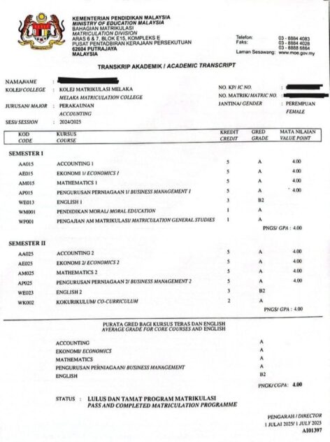“But when the results were released, her world came crashing down. All three universities rejected her. Instead, she was offered a place in accounting at Universiti Putra Malaysia (UPM) – her fourth choice – far from the dream she had worked so hard for.”