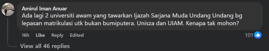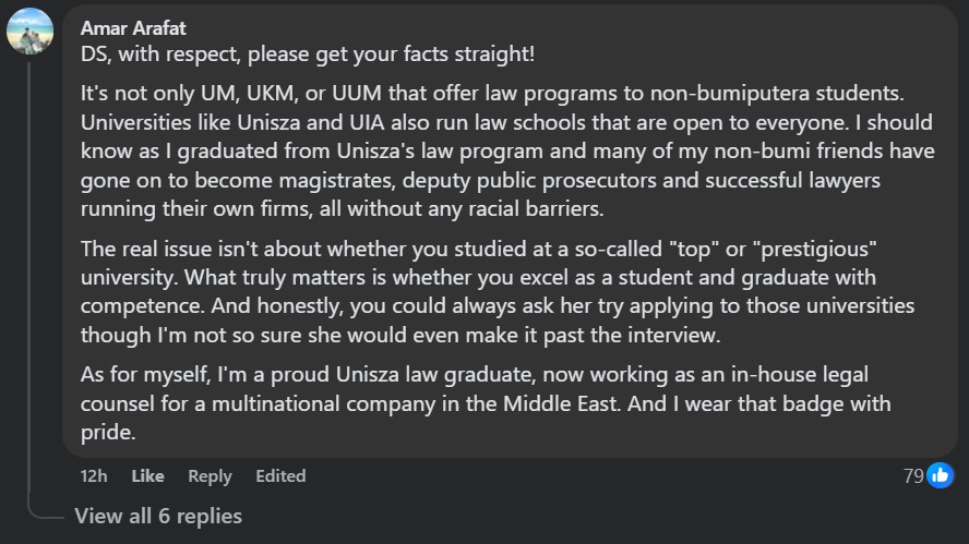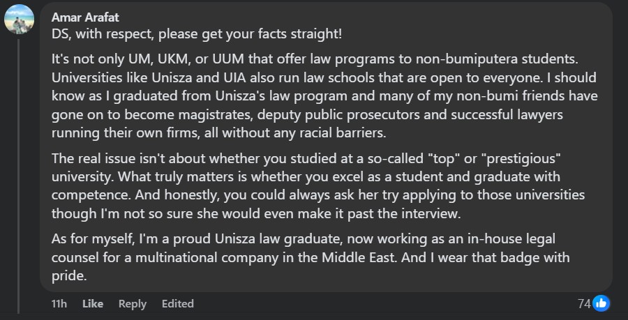 A few commenters further highlighted that law courses are not only offered at UM, UKM and UUM but also at other public universities such as Universiti Sultan Zainal Abidin (UniSZA) and the International Islamic University Malaysia (UIAM).