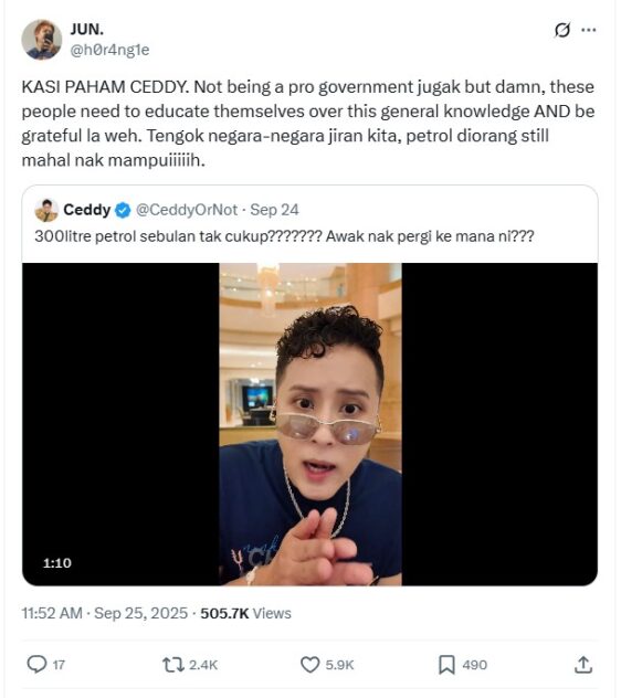 Echoing Ceddy’s sentiments was Jun (@h0r4ng1e) proclaiming that the post was NOT in support of the Madani administration but merely to highlight that the incessant complaining reflected a lack of understanding and knowledge.