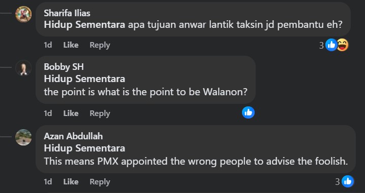 “How could Anwar have anticipated that he (Thaksin) will run away, his daughter would lose her position and so on. It’s up to PMX whether to seek advice online or just switch to another advisor,” chided the commenter.