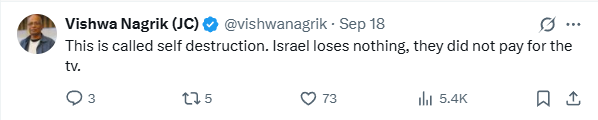 “This is called self destruction. Israel loses nothing, they did not pay for the tv,” said @vishwanagrik.
