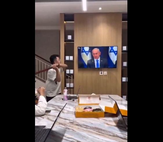 And it has nothing to do with burning the Zionist flag or stepping on it. It involves smashing a television because it briefly aired the Prime Minister of Israel, Benjamin Netanyahu, giving a speech.