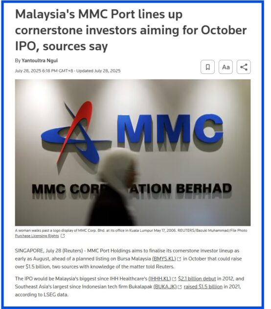As October looms, MMC Ports stands at a crossroads. Its IPO could mark a triumphant return of Malaysia to the big-league capital markets -or a cautionary tale of ambition overshooting reality. – Focus Malaysia