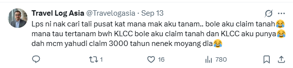 “Please prove that your umbilical cord was buried there,” said netizen @f4kr0ls00d while @Travelogasia wondered if he could claim the land below KLCC if his umbilical cord was buried there.