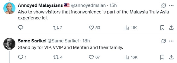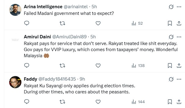 KL Sentral is meant to service the rakyat – not just VVIPs, the critique of public transport further lamented. The post which has amassed 276.6K views at the time of writing obviously resonated with many ordinary Malaysians who are fed up with this continued thumbing of noses at the rakyat.