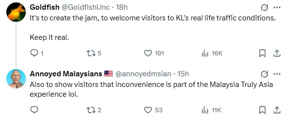 Some commenters sarcastically mentioned that this was to prepare visitors for the reality of Kuala Lumpur where congestion and inconvenience rule.