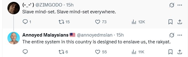 Such a scenario was just more proof of Malaysians’ “slave mentality”.