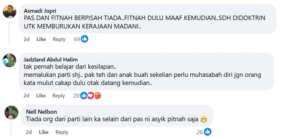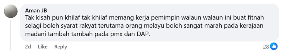 One commenter argued that this was worthwhile tactic so long as PAS id able to raise the ire of its hardcore supporters towards the Madani government, Prime Minister Datuk Seri Anwar Ibrahim and DAP.