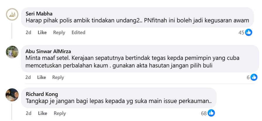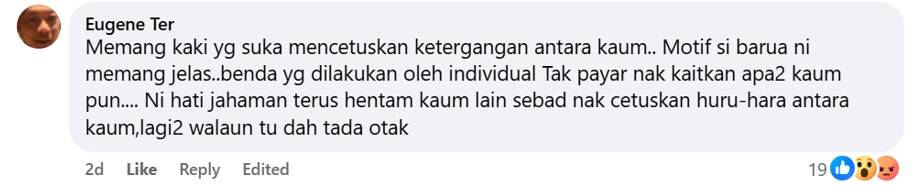 Another commenter also argued that the PAS politician’s motive to stoke racial tensions was clear. Why bring ethnicity into the equation?