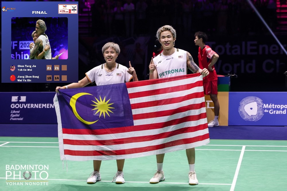 Indeed, the top national mixed doubles pair made it look so easy as they swept aside China’s world #1 Jiang Zhen Ban-Wei Ya Xin 21-15, 21-14 in 40 minutes enroute delivering Merdeka Day joy for Malaysia in the World Championships’ finals at the Adidas Arena in Port de la Chapelle, Paris yesterday (Aug 31).