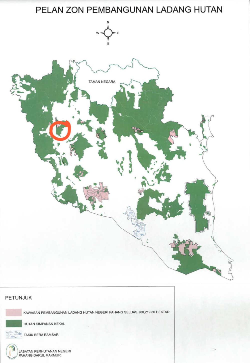 Citing a map of the Pahang Forest Plantation Zone, he noted that the site is designated as a natural forest, not a plantation.
