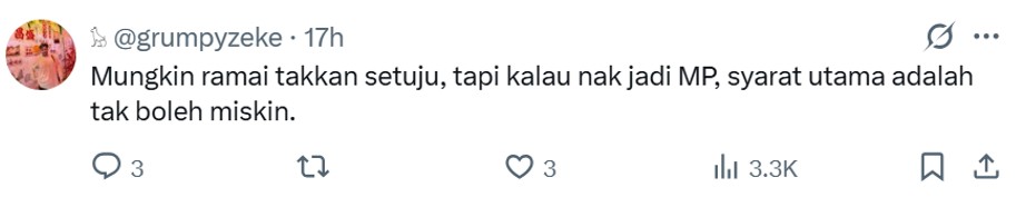 One commenter argued that it may be an unpopular opinion but it was the first condition that an elected representative CANNOT be mired in poverty, an insinuation that this is a sure way to encourage corruption.